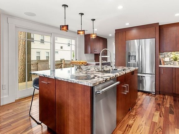 • Features: Closet/Cabinets - Custom Built, Flooring - Wood, Dining Area, Pantry, Countertops - Stone/Granite/Solid, Countertops - Upgraded, Kitchen Island, Wet Bar, Cabinets - Upgraded, Deck - Exterior, Dryer Hookup - Electric, Exterior Access, Recessed Lighting, Remodeled, Slider, Stainless Steel Appliances, Washer Hookup, Wine Chiller, Gas Stove, Lighting - Pendant