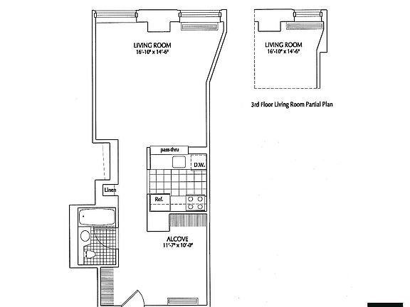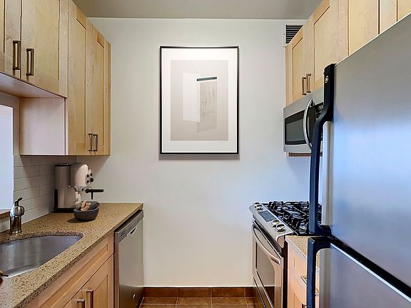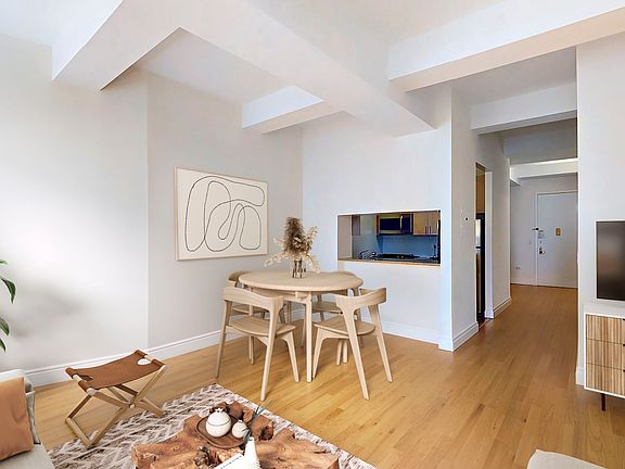 This extra-large studio features a separate sleeping alcove, a pass-through kitchen with stainless steel appliances, and two over-sized windows with open city views. For your convenience, laundry rooms are located on every floor. The use of flex walls or any space alterations are not permitted.