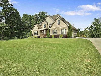 Beautiful Craftsman Home w/Spectacular Lake Views! Immaculate 4BR+Bonus Loft area, 3.5 bath open concept floor plan. Great room has stone gas fireplace, Hdwd flrs. Entertain outside on large deck with private lake & retractable awning. Formal dining w/coffered ceilings. Chef's kitchen w/ granite & island seating for 6. Breakfast area & large walk-in pantry. Master retreat on main w/large luxury shower, 6 ft soaking tub, bidet toilet, self-cleaning toilets in master and main floor guest bath. 3 bedrooms upstairs, theater room and/or office and open loft area. Rocking chair front porch and mature landscaping on 1.5 acres. Large unfinished walk-out basement. Floor plan & sellers disclosures available upon request.