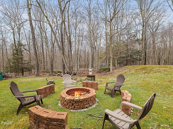 Your lake escape awaits! This charming property offers the perfect blend of both peace and convenience! This home features a practical layout with a lower-level bedroom, half bathroom, and family room while the main level offers an additional two bedrooms, two full bathrooms and a cozy living area with a kitchen dining combo. Venture outside to be surrounded by the tranquil beauty of woods and relax in the outdoor space around the cozy fire pit area. Nestled in the amenity filled community of Indian Rocks, enjoy the scenic shores of Lake Wallenpaupack from the community beaches, as well as a tennis court, playground, pool, fitness center and more! Just minutes to shopping, dining, interstate system and other Pocono attractions. Come embrace a lifestyle where privacy, comfort and convenience converge!