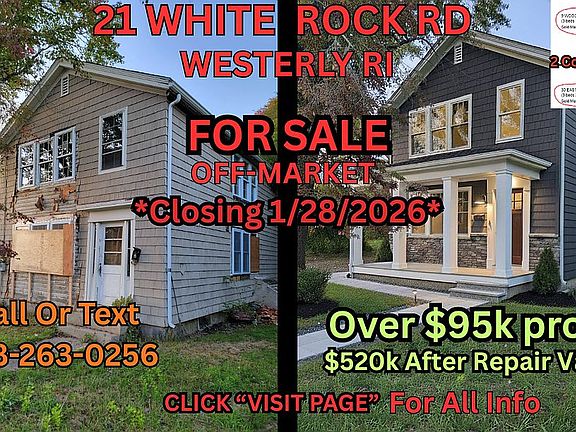Westerly is a Historic/Tourist area surrounded by plenty to do. Shopping Centers, Best Beach in RI (State Beach 15 mins away), Foxwoods resort & casino (15 mins away), Mohegan Sun resort (30 mins away), Aquarium and parks (15 mins away) including malls and much more. 95 is 5 minutes away from the property. Lots of Restaurants and adventure. This property is not only perfect for investors but also first time homebuyers wanting to take advantage of renovation loans. On this Half Acre Lot you can add ADUs for Airbnb, Or add a property for long term rental income. Either way is a win because you can use the immediate equity as collateral to build.