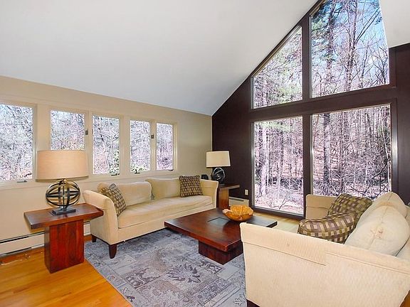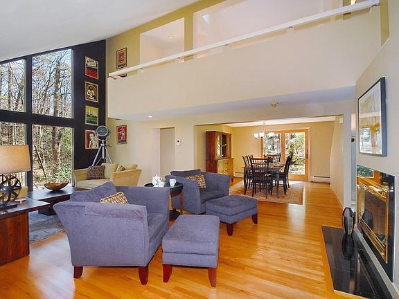 Cathedral ceilings and towering windows with wooded views will capture your desire to relax and rejuvenate with nature and explore and appreciate a more modern way of living. As you travel down the long driveway, the tone is set with this tranquil and peaceful property where a scenic pond and a nicely positioned custom contemporary home await you. This updated and spacious home offers four bedrooms and 3.5 baths on three floors of living. The versatile floor plan provides many surprises and options depending on your particular needs. You'll appreciate everything this property has to offer.