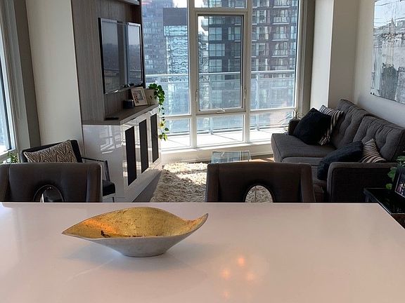 Live in prestigious Cinema towers, in the heart of Toronto's entertainment District, steps to King/Queen street stores & restaurants, theaters, museums, art galleries, subway, streetcars, rogers center, Scotiabank Arena ,financial district and much more Kitchen includes quartz countertops, high-end Miele appliances .Amenities include 35 seat theatre with weekly screenings ,party room,gym,24 concierge ,roof top deck, BBQ patio .FULLY FURNISHED AS SHOWN IN THE PHOTOS -OPTION TO BE UNFURNISHED FOR A LONG TERM LEASE