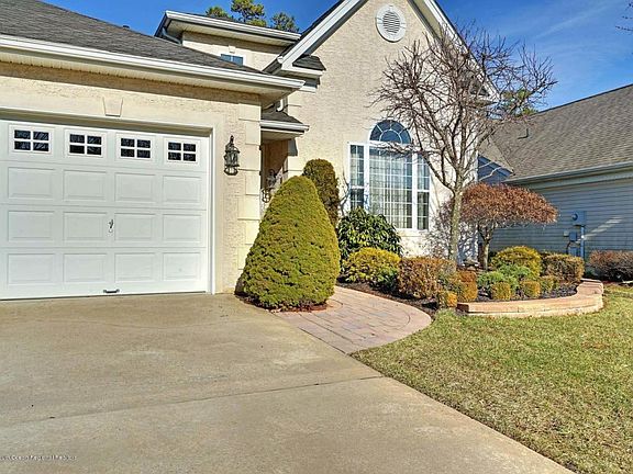 ELEGANT & EXPANDED TOLL BROS. MONACO CHATEAU FEATURES UPGRADED ELEVATION W/STUCCO FRONT, PAVER WALKWAY, PROF'L LANDSCAPING, HARDWOOD FLOORS, SOARING CEILINGS IN ENTRY HALL, LIVING RM & DINING RM ADD TO THE DRAMATIC INTEREST OF THIS HOME UPON ENTERING, HUGE KITCHEN W/CHERRY STAINED CABINETRY, 9FT CENTER-ISLAND, BREAKFAST RM, EXPANDED FAMILY RM W/GAS FIREPLACE, SUNROOM W/GLASS SLIDER LEADS TO A BRICK PAVER PATIO W/ELECTRIC AWNING & A MAGNIFICENT LAKE & GOLF COURSE VIEW. MASTER BDRM W/TRAY CLG, WALK-IN CLOSET, MASTER BATH W/SOAKING TUB & STALL SHOWER. OTHER FEATURES INCLUDE CUSTOM BLINDS, PLANTATION SHUTTERS, DRAPERIES, CROWN MOLDINGS, SECURITY SYSTEM, PULL-DOWN ATTIC STAIRS W/FLOORED ATTIC ABOVE GARAGE.