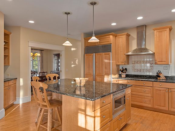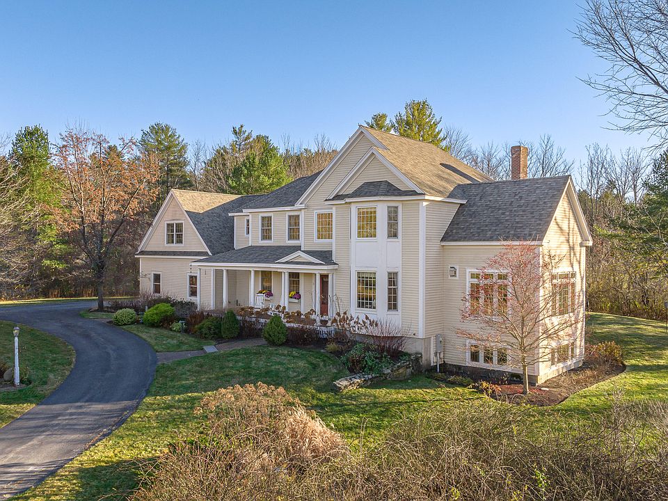 Wonderful and flexible layout in this conveniently located yet private 5BR home with plenty of flexible space for work, study and play. Open kitchen to the family room with wood burning fireplace, separate home office, living room with a gas fireplace and dining room complete the first floor. The second floor contains all 5 spacious bedrooms with extra bonus room. The primary suite is privately situated offering two large walk in closets, gas fireplace and spacious bath. The finished lower level provides space for daylight exercise room and casual entertaining with built in bar. The private outside living space offers a beautiful screened in porch with space for living and dining, and separate patio. Gorgeous perennial gardens make outdoor living a dream. Updated systems (roof and boiler) and less than 1.5 miles to the schools, and easy access to both I95 and 295, this home offers convenience, privacy and plenty of space.