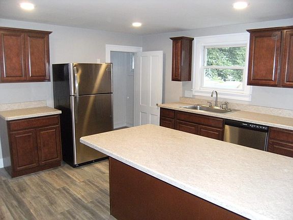 Move right in! Great starter home featuring new kitchen with maple cabinets, soft-close drawers and hi-definition countertops, breakfast bar, laminate plank flooring, recessed lighting and stainless steel appliances! Formal dining room, living room and office/den, all with refinished hardwood floors and 2 enclosed porches (front and rear). The full bath has new vanity, lighting, flooring and attached laundry room! 2nd floor consists of 3 bedrooms with new w/w carpeting. All the rooms have new sheetrock, lighting and flooring. The main part of the house has new roof (stripped, plywood and architectural shingles) and rebuilt chimney. Full basement with gas forced hot air heat and 100 amp CB electric service. Detached 1 car garage has been vinyl-sided and new side entry door added. Also newer water park at the end of the street for the children!