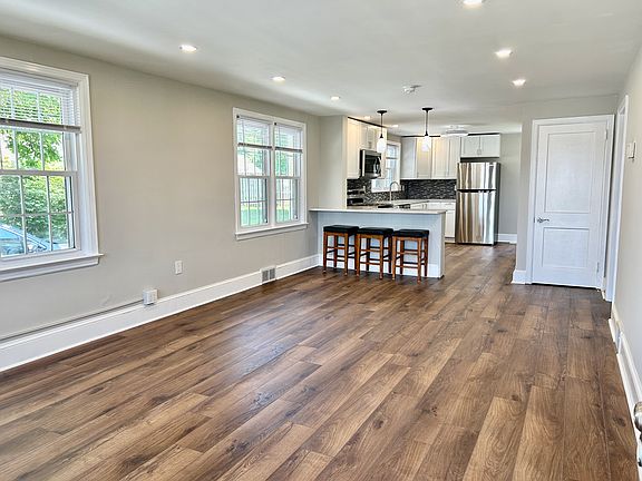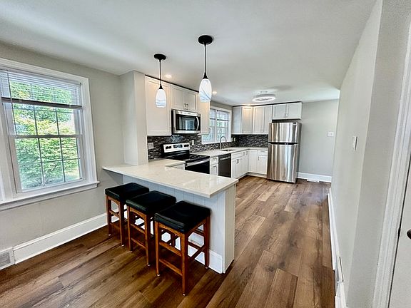 Fantastic location! Fully refinished 3 bedroom home that's steps from the borough of West Chester. This ranch home has been completely updated with luxury vinyl plank flooring throughout. Living room opens to a stunning and bright kitchen featuring white cabinets, quartz countertop and new stainless steel appliances. Breakfast bar easily seats 3 people. Kitchen sports all new stainless steel appliances, and an encased ceiling fan with 6 speeds w/remote. Two spacious bedrooms - each with two light-sensored closets (also with encased ceiling fans) and full bathroom complete the first floor. Downstairs there's an huge finished room (22' x 12") with large closet and full bathroom. Laundry area with new washer/dryer and plenty of storage in the unfinished portion of basement. Driveway easily accommodates 4 cars. Private back yard is perfect for relaxing and enjoying some quiet time or yard games. Short walk to Wawa and restaurants galore and all that the borough has to offer! Shed is not available or included in rent. One dog will be considered on a case by case basis. College students are permitted as home is just steps outside the boro. Showings require 24-hour notice to current tenants. Available early August. Owner pays for water, trash, sewer. Tenant pays for electric, oil, cable and insurance. Tenant must shovel driveway. Garage is for owner use only. Security deposit due at lease signing. First month's rent due at lease start.
