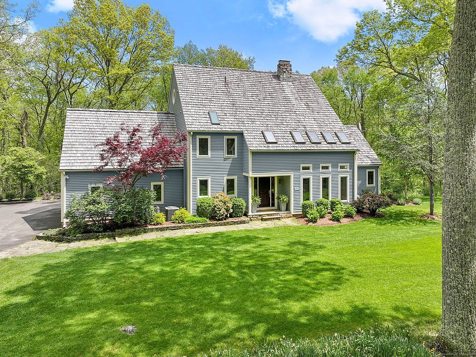 Welcome to 21 Wilson Road, a stunning post and beam home nestled on a quiet street in Weston, CT. This captivating residence offers a casual yet architecturally impressive ambiance with its whitewashed beams, vaulted ceilings and glowing interior illuminated by abundant large windows. The 2-story, 2-sided central stone fireplace adds a touch of rustic charm and is the star of an open floor plan. The renovated kitchen and bathrooms do not disappoint with expert craftsmanship and top-of the line appliances, plumbing fixtures, tile and stone. A charming and quiet office with built-in file cabinets and storage is accessed off the primary suite ensuring privacy and limiting interruptions. Beautiful random width, rock maple floors are everywhere throughout this freshly-painted, meticulously-maintained home. A beautiful wood roof and perennial gardens are on display as you approach the entrance to this exceptional property. Enjoy fabulous views from the maintenance-free deck overlooking the back yard or explore the bordering 119-acre Honey Hill Preserve with hiking trails in the Aspetuck Land Trust. HIGHEST AND BEST OFFERS DUE BY 5/14, 12:00 pm.