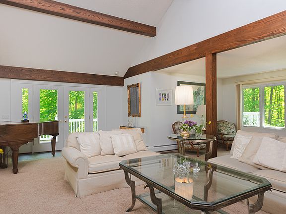 This much desired modern style home is located in a peaceful tranquil setting with just over an acre of land. An updated kitchen with granite counter tops, Viking appliances and an eat in area with floor to ceiling windows allows for tons of natural light to enjoy. The second floor is the perfect suite retreat complete with a fireplace, master bath, ample closet space and room for an office, overlooking the open floor plan below. Completing this home is a full walk out basement, Buderus burner, central air, expansive deck off the first floor, large 2 car garage and a private yard with plenty of room to entertain.