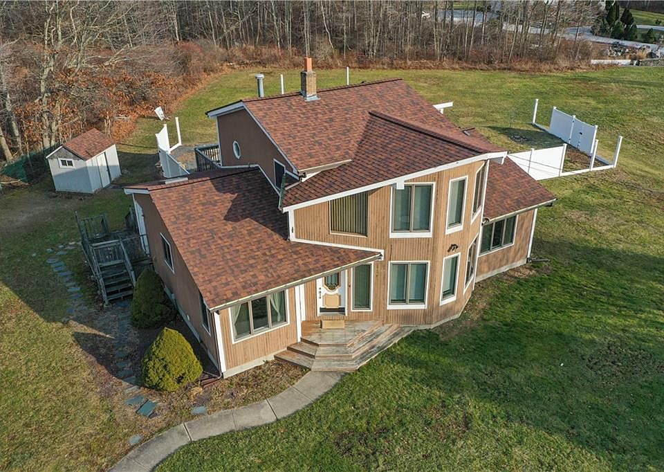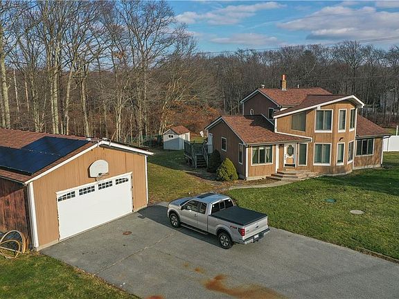 Renovated contemporary situated on a 3 acre homesite. The 1st floor has an open floor plan with an eat kitchen featuring new counters, backsplash and appliances, a large living room with slider to a private deck, a dining room with a wood stove hook up and a full bath. The 2nd level featuring a master bedroom. Lower level with a separate kitchen, full bath, family room and bedroom which is a great in/law apartment. Hardwoods and ceramic flooring throughout .There is an inground pool and an oversized garage, solar panels, central air, 2 stoves, 2 refrigerators, 2 microwaves and 1 dishwasher.