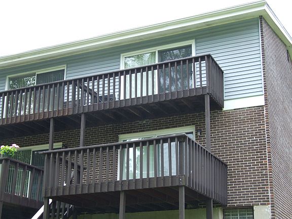Best in complex! Quiet end unit w/new energy efficient windows & doors-newer carpeting -Gracious entry w/closet, Open LR/DR w/expanded deck overlooks wooded yard. Finished LL recrm 28x13/panelled/carpeted-incl washer/dryer-Master w/sliders to priv balcony