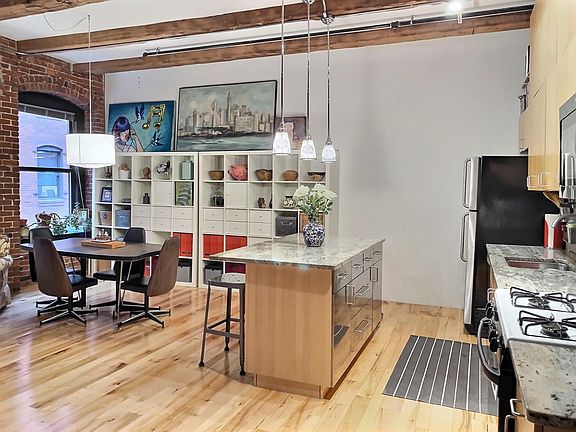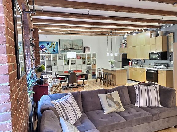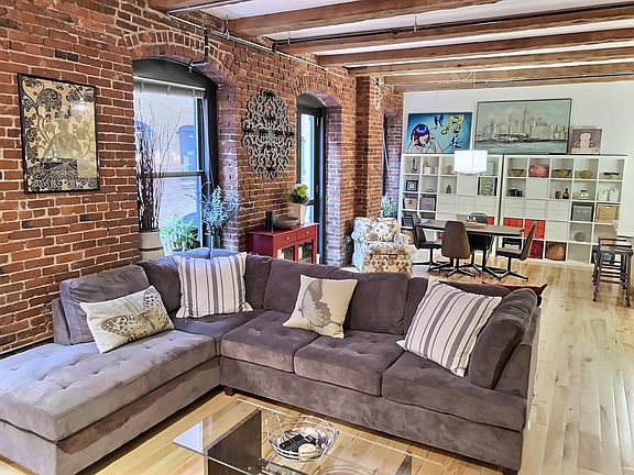 AVAILABLE SEPT 1, 2024. Chic modern metropolitan "Brick & Beam" LOFT at Fort Point Place Condominium in Boston's bustling Seaport District! The unit offers a flexible open plan, extensive architectural detailing including an 11-foot high ceiling acoustically soundproofed in between the beams, 2 walls of exposed bricks, beautiful wide plank hardwood maple floors, drenched with natural light through 3 over-sized industrial windows and a Juliette balcony. Additional modern accoutrements include a custom spa-style Italian marble bath with radiant heated floors & a large walk-in shower, Brazilian granite kitchen counter top & island w/ newer stainless steel fridge & dishwasher, gas cooking range, microwave and garbage disposal. The bedroom has been built-out with large closets and 2 customizable wardrobes on wheels allowing for privacy from the main living space. One off-street dedicated parking space is included. Enjoy endless dining options and a vibrant nightlife. Located close to major highways as well as walkable destinations, including public transit. Renter responsible for all utilities: gas, electric, and cable/internet. No smoking allowed. Tenant to pay First month, Security deposit. Move-in fee of $250. Move-out fee of $250. No Broker fees!