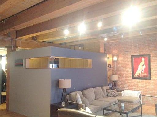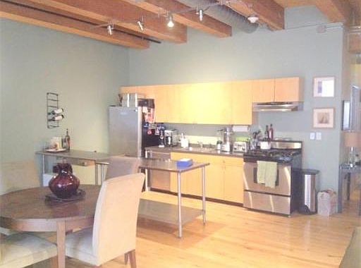 Brick & Beam LOFT at Fort Point Place with garage parking included. Unit has been nicely renovated with a closed off bedroom area, custom wardrobes, stainless appliances and custom bath. Available 4/1/2014.