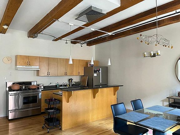 DON'T MISS this blank canvas open concept loft living 1,026 SF 1 bedroom brick & beam condominium ready for your personal touches at Fort Point Place in Boston's Seaport District! A deeded garage parking space is included with the unit. Some of the unit features include 2 walls of exposed brick,11 foot high ceilings which have been professionally soundproofed in-between-the-beams, wide board 3/4" maple hardwood floors, 4 large industrial windows offering wonderful natural light from the units western exposure, a custom built kitchen center island with a granite top, stainless steel fridge, dishwasher and gas stove. Custom pendant & track lighting throughout the unit. A large built-in bedroom with 8 foot high walls and two huge wardrobe systems. Washer & dryer, gas cooking & central air conditioning. The gas fired heating system & the electric hot water tank were very recently replaced. Just a 10 min walk to South Station. THE MONTHLY CONDO FEE IS ONLY $311.00