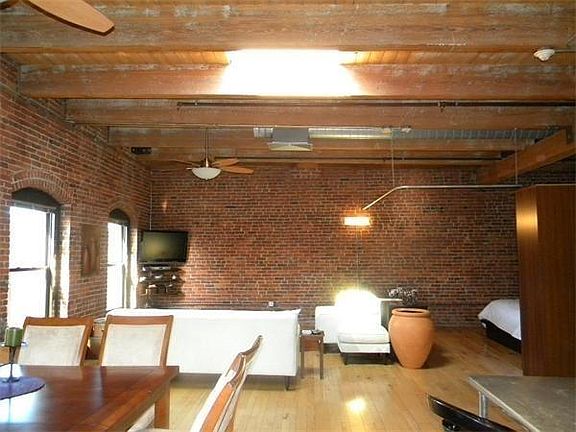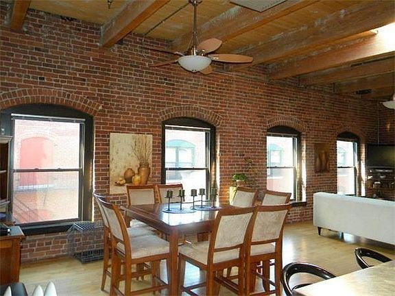 AVAILABLE NOW! Rarely available FOR RENT at Fort Point Place Condominiums in Boston's Seaport District! This Modern designed Penthouse brick & beam LOFT CONDO which features a wonderful western exposure with 4 over-sized industrial windows & center ceiling Skylight flooding the unit with natural light! Granite counters & stainless steel appliances, custom lighting & ceiling fans. A large Hopen Wardrobe System is incorporated within the sleeping area. 12 foot high ceilings, 2 walls of beautiful exposed brick, gorgeous wide board maple hardwood floors! Central A/C and New high capacity laundry in-unit! A garage parking space is included in the rent price.