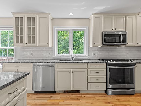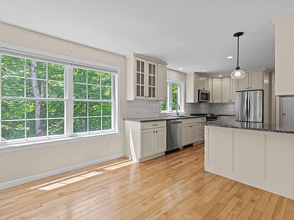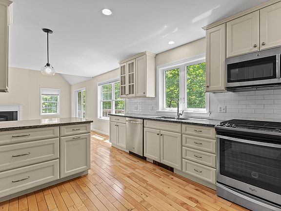 This central Cumberland, Maine Cape-style home offers a delightful blend of comfort and style, featuring three bedrooms and two full baths. Nestled on a serene 4-acre lot, it provides ample privacy with a sunny yard and woods behind. The spacious two-car garage offers the convenience of direct entry into the home. Inside, the living room boasts a stunning cathedral ceiling and a cozy gas fireplace, which opens to an outdoor deck, creating a perfect space for relaxation and entertaining. Freshly painted throughout, this home is move-in ready. Plus, it's within walking distance to schools, the farmers market, and downtown. Invisible Fence installed. Don't miss this opportunity to own a charming home in a picturesque setting!