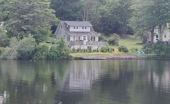 LAKEFRONT HOME!!! Great 2 Bedroom home located on a Cul-De-Sac and Lake. Nice hardwood floors, well kept knotty pine paneling. View of the lake from most windows. Sun porch is heated can be used as dining area with great views of the lake all year around. Property has a dock and deck to enjoy on those summer nights. Close to Warwick, great places to eat, Wineries, Hiking trail, Ski slopes for winter time fun. Mandatory Yearly easement due $222.00 and if you would like to join the Clubhouse Beach $279.00 yearly.