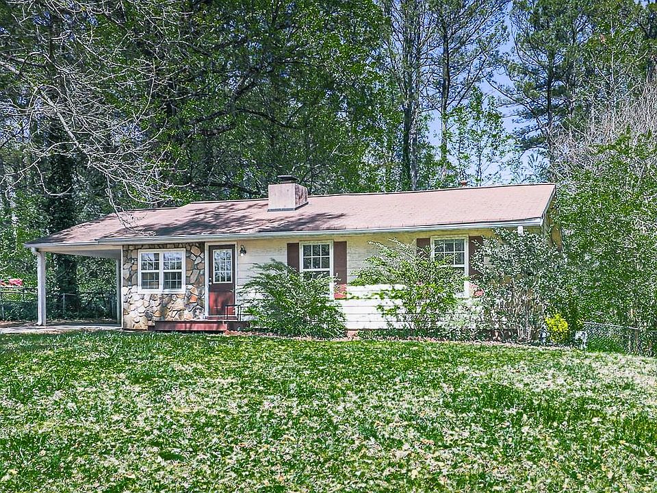 One level living in an excellent location! Quiet neighborhood with no HOA! Three bedrooms, 1.5 bathrooms, a spacious kitchen, Livingroom/dining space and a laundry room . Deck overlooks a fenced backyard, perfect for enjoying morning coffee or evening sunsets. Flat front and flat backyard. Inside you'll find a stone-front fireplace, adding warmth and character to the living space. The carport also has a handy storage area, offering extra space for your belongings, two sheds in the yard to remain as well. Enjoy the ease of access to shopping, schools, parks, and I575, making daily errands and outings a breeze. Don't miss out on the opportunity to make this wonderful home yours!
