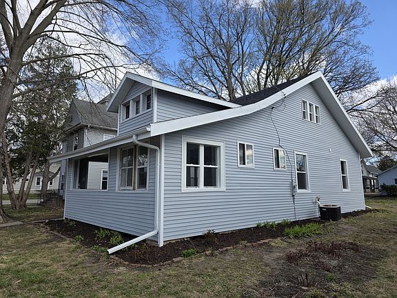 Nicely re-modeled 2 story. New roof (2024). New siding, Facia, Sofit, and windows (2025), New LVT Flooring in kitchen, living room, dining room and bathroom (2025). New carpet in bedrooms (2025). Kitchen has refinished cabinets with new hardware, new sink, counter top and tiled backsplash (2025). Freshly painted interior (2025). Livingroom has built in bookcase. Remodeled full bath and half bath. New light fixtures. New front and back door (2025). 8 x 14 covered front porch, 8 x 10 sunroom. Master bedroom with sitting area and private half bath.