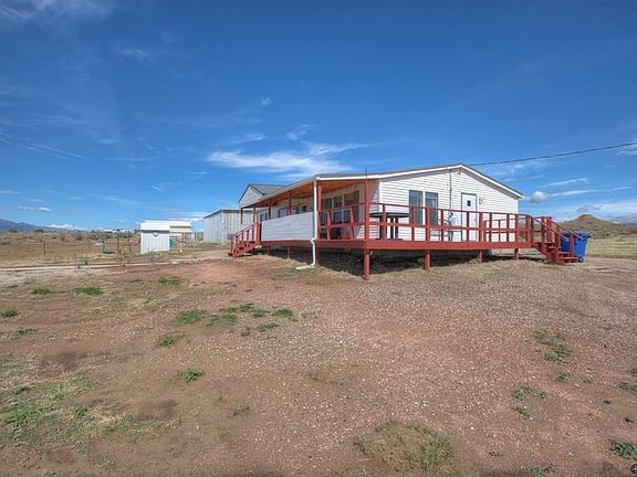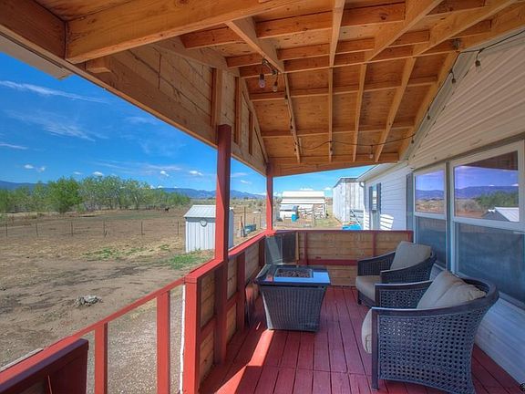 Your rural dream is about to come true with this wonderfully maintained 3 bedroom, 2 bathroom 1344 sq ft manufactured home built in 2000, on close to 10 acres featuring a gigantic (30'x40', 5-6 car) metal garage/workshop, barn with 2 stables and tack room, and a spring-fed pond on the property! You will love the bright and airy feel of the lofted ceilings throughout, the split bedroom design, with double sinks and shower in ensuite master bathroom, walk-in closet, and skylight in full bathroom! Kitchen has been nicely updated with tile backsplash and wood-topped island/bar, with lots of cabinet space, built-in pantry, and an eat-in breakfast/dining area! New metal roof installed in 2022, Hot water heater replaced in 2016. Cozy and highly efficient pellet stove and swamp cooler to encourage the cool summer breeze. Permitted well currently used for livestock; sale includes two cisterns for water supply to house, for a total of 2500 gallon storage on the property, and a 200 gallon tank for the back of your pickup truck. Fenced for livestock and ready for almost any hobbyist's projects or your big-toy storage! Look forward to the endless afternoons and summer evenings that you will spend relaxing on the new covered deck and enjoying the incredible big sky view of the Wet Mountains and the Sangre de Cristo peaks beyond. Peaceful, private location, with easy access to Hwy 50 and 115 for commuters to get wherever they need to go! Appointment required. , Construction: Manufactured