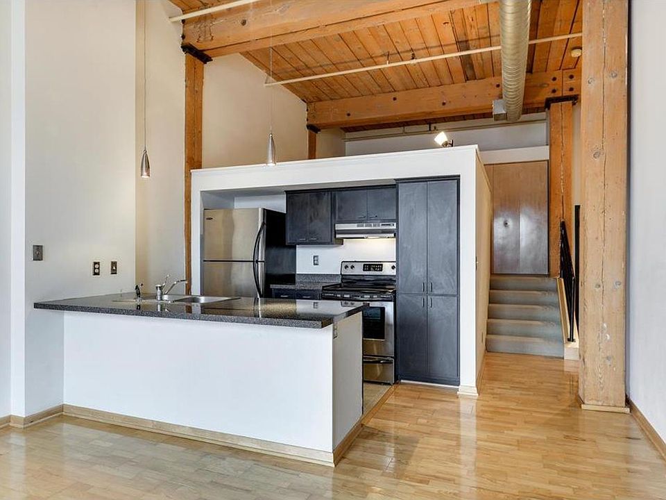 Great downtown loft with soaring ceilings and beautiful post-beam construction in historic Whitney Square building. Incredible downtown skyline views, updated kitchen with granite countertops and stainless steel appliances, whirlpool bath, in-unit washer/dryer, and even a coveted off-street parking space!