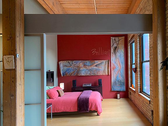 Furnished Loft. Located in the North Loop, this stunning 3rd floor, 2 bedroom loft occupies a 1894 wood post and beam warehouse. The unit has 14 foot ceilings and exposed brick walls with fantastic views of downtown Minneapolis. This open floor plan is set up as a Master Bedroom and an office/guest room with a fold down sofa in the loft. The full kitchen features granite countertops and island cooking and seating, bamboo flooring with area rugs, and stacked washer dryer. The glass tiled bathroom features a 6 foot soaking tub for relaxation after a hard day. A designated surface parking space is included directly behind the building. There is no smoking nor pets allowed in this building. The desired lease term is 1 to 3 months, beginning the first of the year 2022. (Zillow click form does not allow selection of this option). This is in the heart of the trendy North Loop Neighborhood, with the two of Minneapolis' best restaurants on the same block. The first floor has an Art Gallery, Hair Salon and a Jeweler. Located 2 blocks from the Mississippi River, there are beautifully landscaped walking and bicycle paths in all directions. Nightlife is vibrant with multiple restaurants, bars and music venues, including the Twins ballpark within a few blocks walk. All utilities and Internet included. No smoking. No pets.