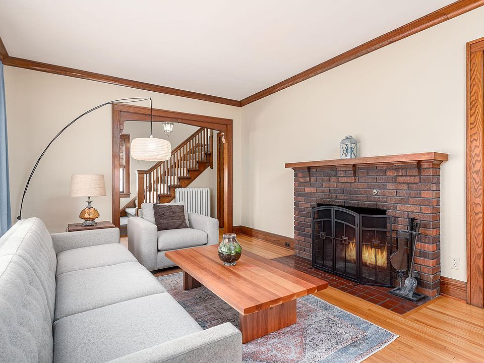 Don't miss this rare Craftsman style beauty in the heart of Bayport! Stunning woodwork and craftsman style architecture fill this two story home. Enjoy the custom character of the beautiful trimwork, dining room built-ins and hardwood floors. Relax in the cozy living room with fireplace or retreat to the bright sunroom porch on the main level. 3 bedrooms upstairs with hardwood floors, an updated bathroom, and a brand new boiler. Spacious corner lot with attached garage off the side road. This hard to find craftsman style architecture won't last long!