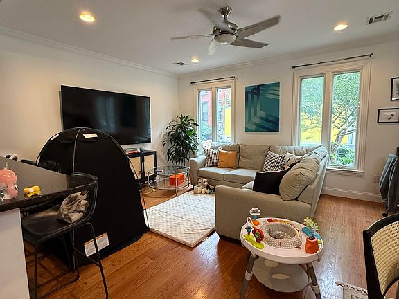 Beautiful 2-bed, 2-bath apartment in the heart of Historic Downtown near Hamilton Park. This home features high ceilings, a bright south-facing open layout, and bedrooms tucked privately in the back. The modern kitchen comes with a gas stove, dishwasher, microwave, and plenty of storage. Enjoy central AC, in-unit washer/dryer, ample closets, and a rare huge private backyard perfect for relaxing or entertaining. Close to PATH, schools, restaurants, and all Downtown has to offer.