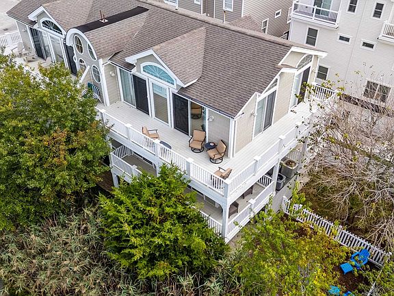 Nestled on a quiet, highly desirable street in Sea Isle City, this stunning townhome offers a rare opportunity to experience breathtaking, unobstructed bay and sunset views from nearly every room. Meticulously maintained by its owners, the home boasts 5 spacious bedrooms, a bonus room, 3 full bathrooms, and 2 half baths, all complemented by expansive wraparound decks that showcase the spectacular views. The two master suites each feature private bay-view decks and beautifully tiled, glass-enclosed bathrooms. Inside, the home is filled with custom hardwood floors, recessed lighting, a cozy gas fireplace, and a gourmet kitchen with custom cabinetry, granite countertops, tile backsplash, and stainless-steel appliances. Additional highlights include custom-tiled baths, cedar impression siding, a stone foundation, and a fenced yard with an enclosed outdoor shower. Located just a short walk from Sea Isle City's vibrant attractions, this townhome offers the perfect blend of privacy and convenience. The floor plan includes a garage and bonus room on the first level, four bedrooms and two baths (one en-suite) on the second, and a spacious third level with a living room, dining area, kitchen, another master suite, and vaulted cathedral ceilings. Sold fully furnished, this home is truly a one-of-a-kind gem that combines luxury, comfort, and an unbeatable location.