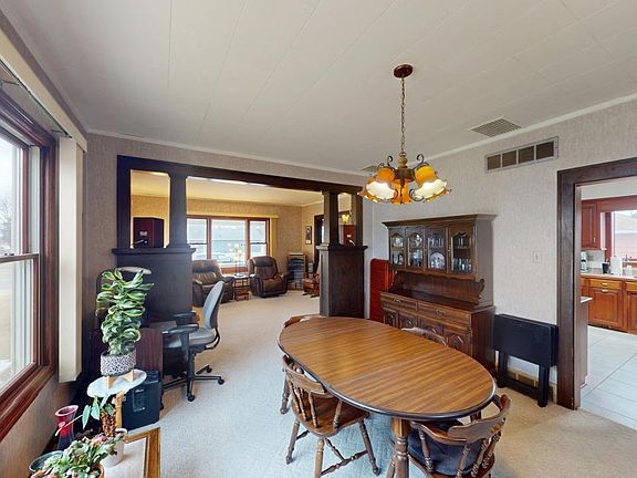 This charming 3BR/1BA Browerville home sits on a 0.163-acre lot with a detached 2-car garage and concrete driveway. Just a few blocks from Main Street, the home is conveniently located near schools, parks, and Drayer Creek, which connects to the Long Prairie River. The cozy two-story features a welcoming front porch that leads to a foyer with hardwood floors that continue throughout the hallway and upper level. The spacious living room boasts built-in shelving, while the adjoining dining room opens to a kitchen with ample cabinet/countertop space, as well as a built-in planning desk. A mudroom is accessible from the kitchen. Upstairs, you'll find 3BRs and a 3/4 bathroom with a clawfoot tub. Recent updates include a water softener (2014), AC (2015), furnace (2018), stove/range (2019), new washer/dryer (2021), and an electric water heater and garbage disposal (2022). This move-in ready home offers tons of charm throughout. Schedule a showing today!