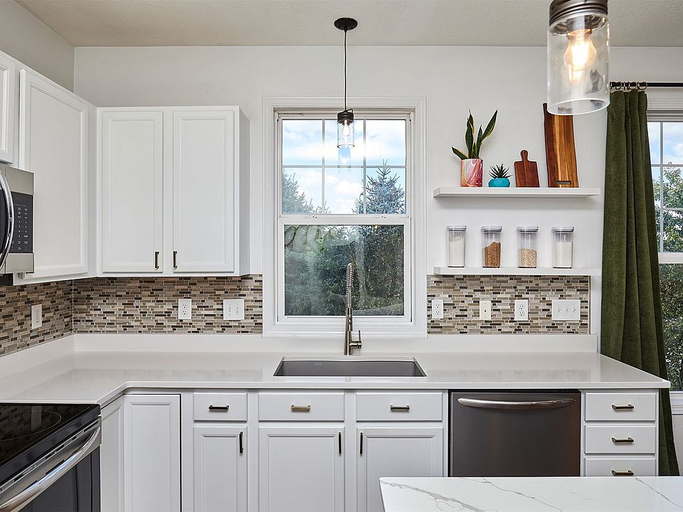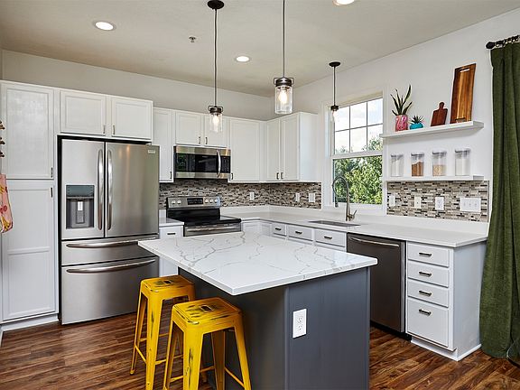 Welcome to this immaculate End Unit townhome with walkout lower level! When entering into this townhome you will notice the tall ceilings heading upstairs, where you will find a beautifully updated kitchen that opens up to the upstairs living room with a cozy fireplace. You will also find a half bath for guests and a beautiful large master suite. The master bathroom has been beautifully updated with dual vanities. When you head downstairs you will find another large living room with built-in shelving perfect for an in-home office, and a door that heads outside to your private patio. This is not just any outdoor space, this end unit offers a private patio with green space and trees. You will also find another beautiful full bath and another bedroom.
