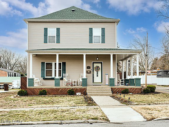 Classic turn of the century home that's maintenance free with wrap around covered porch, outdoor living area with new fireplace and a amazing out building that has many use options. Updated windows, new shingled roof, new metal roof on potting/she shed, new gazebo also with new metal roof. Out building has a newer metal roof and is electric metered separate from the main house with 200amp service. This out building could be used as living quarters currently with half bath but shower could be added one bedroom and has a 2 car carport and RV parking area. Inside the main house there are updates galore including custom kitchen cabinets, nice counter tops,upgraded appliances , plumbing and electrical. Dining room is huge with built-ins and tray ceiling as well as the large front living room also with built-ins. Second floor consists of a large primary bedroom with double closets, second bedroom also with double closets and the third bedroom has a walk-in closet to the right just before entering the room. Hallway full bath that's been retiled and newer fixtures rounds up the second floor. Finished lower level has several nice size storage rooms, large room that's been used as a bedroom in the past and a big laundry room area with built-in shelving and is being used as a workout area at one end. There is more updates to this house including outdoor main water line and outgoing waste line as well. Pride of ownership is written all over this home come see it for yourself you won't be disappointed. FYI 2 of the electric fireplaces don't convey with the home .. the first and second floor units