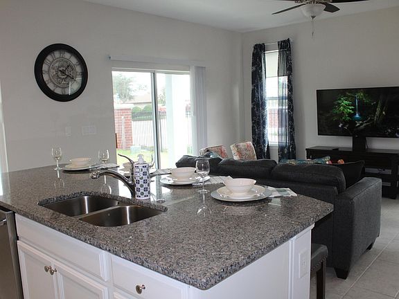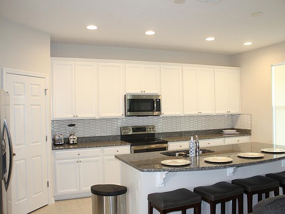 Brand New Modern House Minutes From World Disney This House Features a Spacious 1st Floor Plan That Will Be Amazing For Friends and Family - Elegant Kitchen Including Granite Counter Tops/Bar - Upgraded 42 Inch White Cabinets - Stainless Steel Appliances (Including a Refrigerator) - - European Style Large Glass Walk In Master Shower with Granite Countertops and Double Sinks -A Loft Is located In the Second Room For All Your Entertainment Purposes. Second Bathroom Also Features Granite Countertops and His/Hers Sinks - Spacious Bedrooms with large closets-2 Car Garage Painted Floors with Insulation. Electric Outlets have Been Installed In the Garage as Well As The Patio for Security Cameras. Corner Lot for Extra Security-Ceiling Fans Are Installed Throughout The House. Washer and Dryer Included. Gated Community Minutes Away to Disney, Omni Resort& Golf, I4, Kids Playground. Priced to Rent Quick!