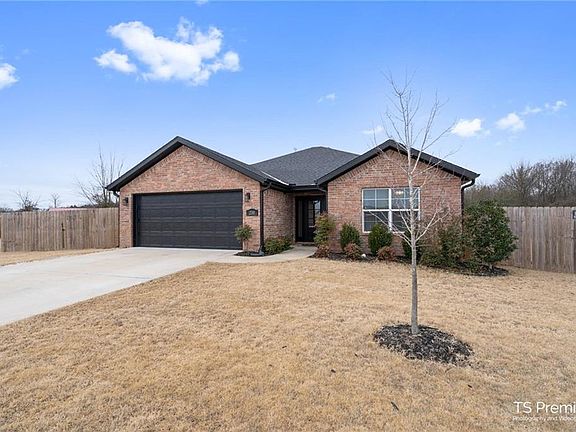 An immaculate home located on a quiet cul-de-sac in Elkins. An inviting entry and main living area boasts wood laminate floors, gas fireplace, and tall ceilings with an open concept that flows nicely into the beautiful kitchen that displays granite counters with seating area, large ceramic tile flooring, SS appliances, brick backsplash and an eat-in area. The master bedroom features a large walk-in closet, bathroom with double sinks and separate jetted tub and tiled shower. The home also offers 2 more bedrooms and another full bathroom. Don't forget the huge fenced-in backyard that has a concrete patio with extended wooden patio, and enough space for a future pool or entertainment area and still have lawn to run in. The home also offers surveillance cameras that will remain with the home. Location is great - less than 1 mile to Elkins Schools, Bunch Park, and the White River, less than 3 miles to the grocery store and restaurants, and just a 15 minute commute to reach Fayetteville. Less than 3 years old!