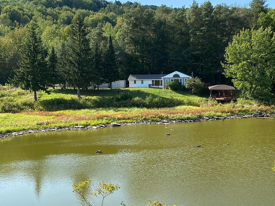 Very nice 3 bedroom 2 bath ranch on 7.09 acres overlooking large pond which used to be small private lake until dam was opened. Beautiful views and deck to enjoy the splendor of the land. Private road. Open floor plan. Cozy wood stove for those chilly nights. Garage to hold the toys and close to East Sidney Dam Recreational area for swimming, Boating and camping. Many updates to the home. A wonderful upstate home in the foothills of the Catskills.
