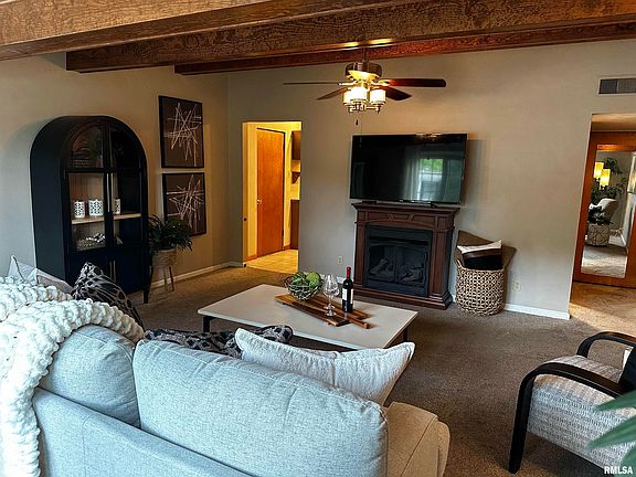 Centrally located in a private setting on a cul-de-sac. Much larger than it appears from the outside. Spacious living room with gas fireplace, large bedroom with a cedar lined closet. Cozy den off dining for additional family room space. Nice sunroom could easily be opened up to den which could add additional living space. Beautiful private back yard includes a newer oversized, stained and stamped patio (2-3 years). Roof is approx. 7-8 years old, Beam work in various rooms 4-5 years, New patio door 2-3 years old. Additional laundry hook up in spare bedroom closet if desired.