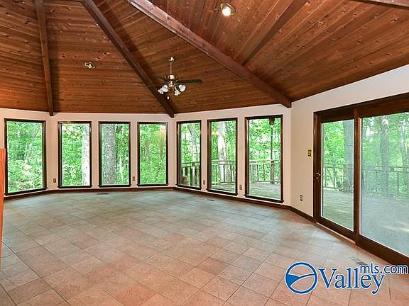 ONE OF A KIND! THIS UNIQUE 1 BEDROOM CEDAR HOME IS NESTLED IN THE MIDDLE OF 36 TRANQUILL ACRES. SOARING CEILINGS TO A SKYLIGHT.Great guest home while building your new home on the acreage or bachelor pad. 18X29 MASTER BEDROOM , 18X29 FAMILY ROOM. PANARAMIC VIEW FROM ALL PICTURE WINDOWS. 18X60 DECK OVERLOOKING THE ROLLING HILLS AND TREES. Conveniently located between Decatur and Hartselle.Woodburning heater on beautiful rock hearth. Kitchen features refrigerator, stove , microwave, dishwasher , tile back splash. Being sold "as is".