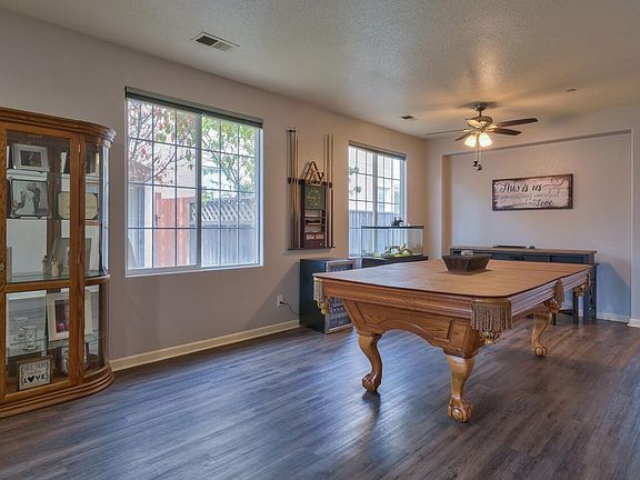 This home is 100% move in ready. A single story 4BR/2BA that has laminate flooring, a family AND living room that leads to the 2018 sq ft of total living space. New interior paint in most of the house, the kitchen has refinished cabinets, an extended kitchen island for additional seating, beautiful granite counter tops, stainless steel appliances, and stainless steel sink. Ceiling fans in main living areas. Through the doors of the living room enjoy the patio for outdoor entertaining which also has a new shed for storage. Home conveniently backs to neighborhood park. Close to the freeway and the newer Starbucks center, and walking distance to elementary school. This is a must see!