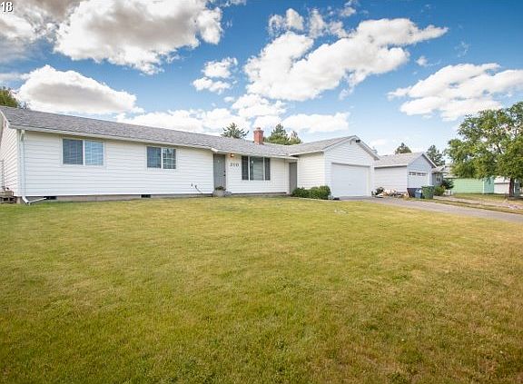 Open Concept Sunny Hills Home! Come take a look at this beautiful kitchen in this 3 bedroom, 2 bathroom home. With updated floors, windows and a large attached garage, this makes for a perfect place to call home in South La Grande! The interior is spacious with a large kitchen island, living room and extra family room area! Come take a look, these are moving fast!