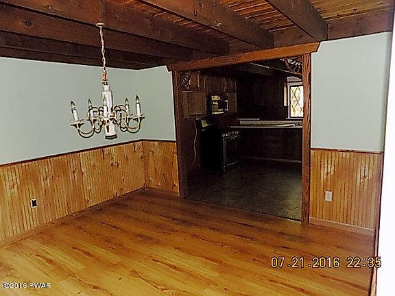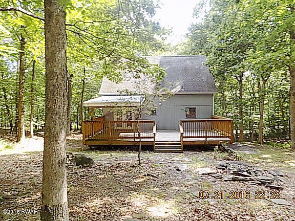 Affordable Contemporary style home in the very prestigious Pocono Woodland Lakes. Home offers country living on a nice 1.27 acre parcel. Features include kitchen with lots of counterspace, living room with corner fireplace, 3 bedrooms, 1.5 baths and a full mostly finished basement. This is a fine value and perfect for vacation, starter or retirement home.