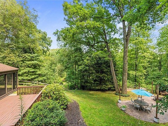 PRIVACY! PRIVACY! PRIVACY! Nestled among towering trees, this updated home offers an open-concept living area, tall ceilings and large windows to take in the natural beauty that surrounds this 2+ acre property. Freshly painted interior and new LVT flooring throughout the main living area. Lovely eat in Kitchen with SS appliances and adjacent Dining Room. New lighting collection throughout the home feels modern, cozy and bright. Brand new master and hallway baths. Unwind in the lower level family room, complete with wood burning fireplace. French doors open to the sunroom with hot tub, screened patio and deck, seamlessly connecting indoor and outdoor living. Step outside to discover your own slice of paradise- enjoy the dappled shade on the stamped concrete patio/ fire pit area and beautiful 2020 inground pool. Enjoy the peaceful surroundings. Move right in and applaud the beautiful updates! Convenient access to amenities and major highways. Roof 2017 HVAC 2014. HSA Warranty Included.