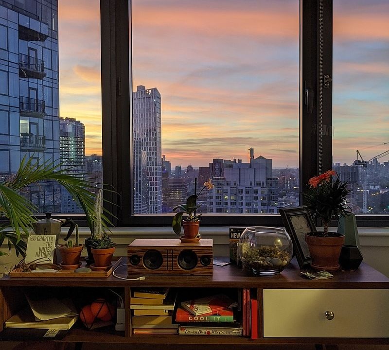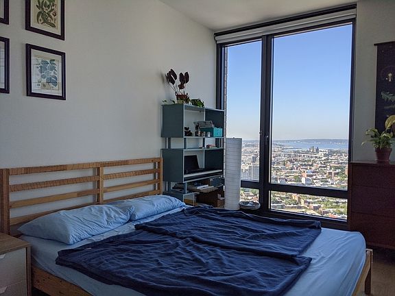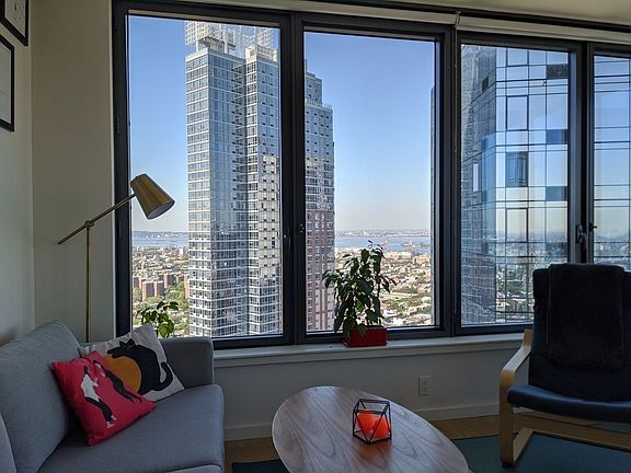 Corner unit with stunning views of Manhattan. Double exposures in both living room and the bedroom. Beautiful sunset colors in the afternoon. Hardwood floors and stainless appliances feature in the apartment. Ample storage space. Furnished is optional.