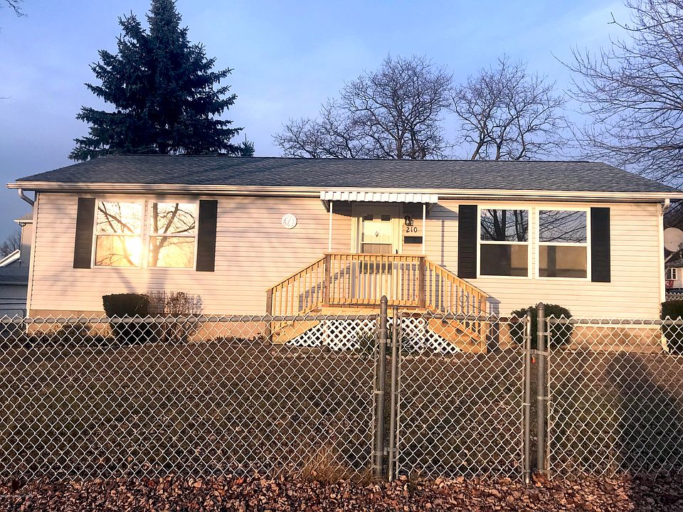Ultra modern kitchen, new , appliances, counter tops, flooring. New wall to wall thru out , dining area with patio doors leading to rear deck . Modern bath with walk in shower, tile floor. Full unfinished basement ideal for additional living area. Fenced yard with storage sed. A must see to appreciate.