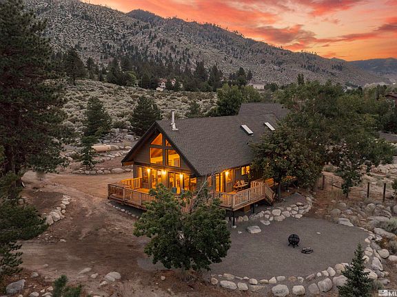 Amazing elevated views from this mountain chalet. Home has 3 bedrooms, 2.5 bathrooms, office and large loft adjoining a private spacious primary suite. There are two separate attached garages boasting 1400 SF combined. The 1.23 acre lot is partially landscaped and ready for the new owners personal touch. Major remodel/addition, by local, longtime contractor was completed in 2019. Ideal location, 10 mins to old town Minden, 12 mins to Boulder/Stagecoach chairlifts at Heavenly! 20 mins to Stateline casinos!, Features Include: High-end Engineered Hardwood flooring throughout, Brand new high-efficiency HVAC system (plus Evap. cooling sys), Hydronic radiant heating system- heats throughout home (with exception of loft), recirculating hot water system, Fully remodeled custom Kitchen, Custom Bathrooms, 1,080 sq ft attached garage PLUS 480 sq ft workshop area, Private master suite featuring vaulted ceilings plus an office space, huge walk-in master shower, Stove in Great Room, 50-year roof! Originally Mimi Jobe’s residence!