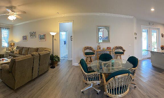 This home is a MUST SEE in beautiful Indialantic, Florida! At just four years old, the home has been ''gently'' used by one part-time resident so it is in 'like new' condition. Walk or bike to the beach AND the river. NO HOA! With 1,879 square feet of indoor living space, the home has an open floor plan and a split bedroom plan with the Master bedroom/En Suite bath on one side and two additional bedrooms sharing a second bathroom off the family room. A fourth room off the front entry and kitchen can serve as a formal dining room or a home office. It also includes a beautiful indoor laundry room with cabinet storage, a utility sink, and a countertop for folding clothes. The two-car garage is oversized with 569 square feet, providing ample space on the right and left for shelving.