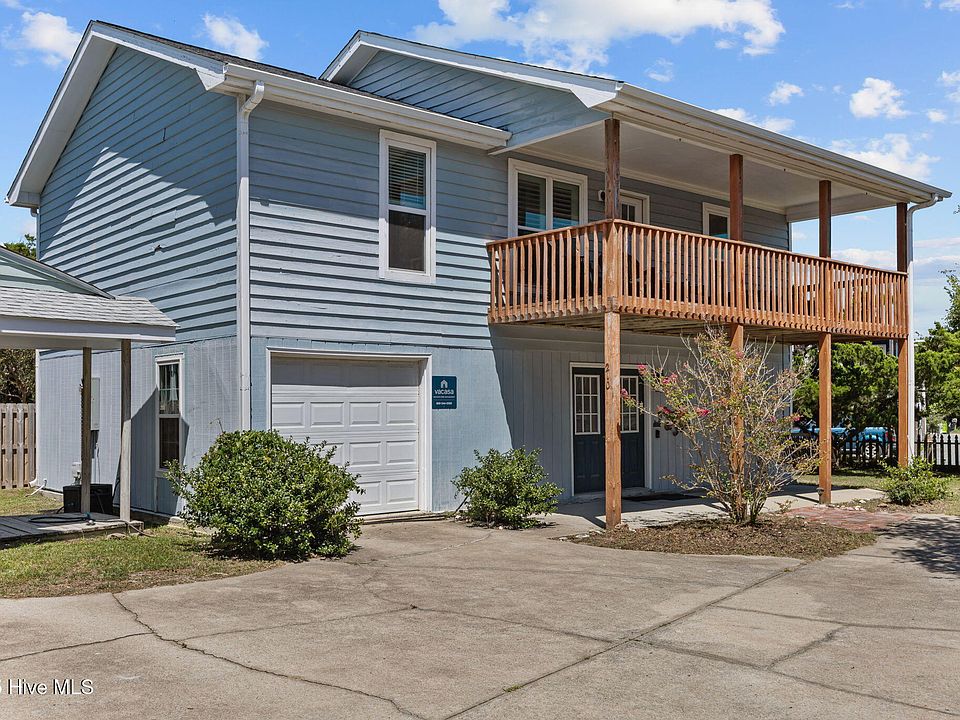 Island living at its best on North Topsail! This coastal home offers 3 bedrooms, 2 bathrooms, and a total of 1,640 square feet of thoughtfully designed space. Whether you're searching for a vacation home, an income-producing rental, or a full-time residence, this property checks all the boxes. Inside, you'll find an updated interior with a bright, coastal feel throughout. The kitchen is both stylish h and functional, with white cabinetry, solid surface countertops, subway tile backsplash, floating shelves, and an island with bar seating. Just off the kitchen, a private deck provides the ideal spot to relax with a morning coffee or unwind in the evening. The open living area is filled with natural light and features vaulted ceilings that enhance the spaciousness. Durable luxury vinyl plank flooring runs throughout the home, while plantation shutters add a timeless touch. The primary suite offers a peaceful retreat with a generous walk-in closet and an ensuite bath featuring dual sinks, shiplap detail, and a tiled tub/shower combo. On the opposite side of the home are two more bedrooms and another full bathroom, offering privacy for guests or family. The ground level includes 600 finished square feet, already counted in the total, featuring a laundry area, extra storage, and access to the one-car garage. After a day at the beach, rinse off in the outdoor shower or spend time in the yard enjoying the coastal breeze. Located just a short walk from beach access, this home is ready for your next chapter - whether that's as a getaway, rental, or place to call home year-round.
