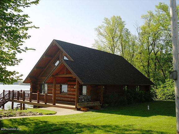 Custom Log Home 3+ bedroom, 2 bath with approx. 350' frontage of lakeshore on Big Turtle. Large deck over looking the lake, 38x62 heated garage/shop, located on a tar road. Great opportunity to own a beautiful home on a great chain of lakes.