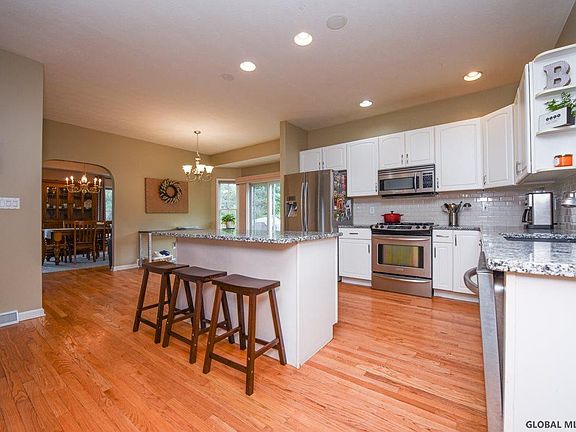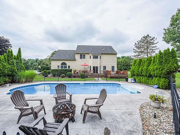 Beautifully built Marini Sagamore home with two-story foyer, hardwood floors throughout and a family room with cathedral ceiling and gas fireplace. Bright and open kitchen with granite countertops, large center island, SS appliances, and large pantry. One full bath and the half on first floor recently updated. Master bedroom with large walk-in closet and luxurious master bath. Wonderful backyard with Trex deck for grilling and heated inground pool with brand new pump for summer entertaining. Inground sprinkler system completely replaced for ease of maintenance. Finished room, rec and workout area in basement recently completed for extra enjoyment. Located on a quiet dead end street, with over a half acre to enjoy.