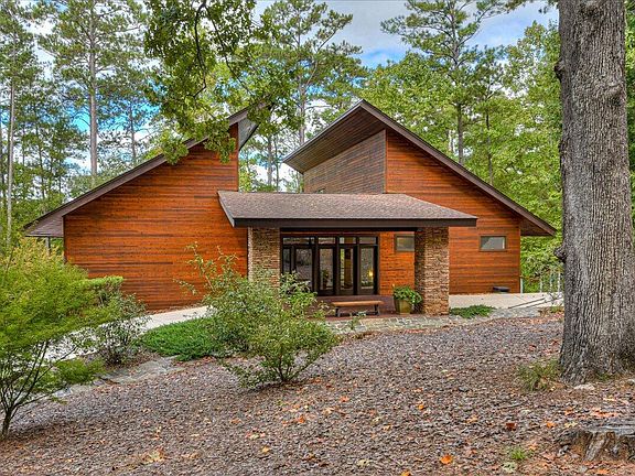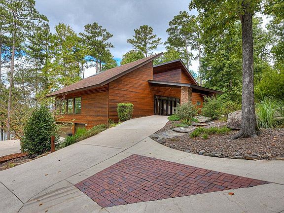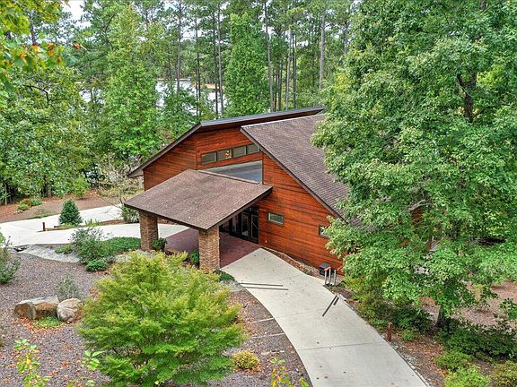 Beautiful Lakefront home blends in harmony with nature. Sitting on a 1.23 acre wooded lot located in the community of Savannah Point in Savannah Lakes Village. The private circle driveway brings you to the covered open air parking. Enter through the custom glass door, then let your journey begin. To the left you can enter a sitting area with floor to ceiling built in book cases, with Brazilian Tiger Wood flooring throughout. Moving forward to the dinning area and family room which offers views of Lake Thurmond through the floor to ceiling wall of windows. Then to your right you see the open gourmet kitchen with large island, custom cabinetry, plus breakfast nook. From the kitchen you have a large outdoor sitting area with phantom screen you can raise and lower with remote. From the kitchen you enter a hallway with a half bath and then continue into the primary owners suite which offers additional views of the water from more of the floor to ceiling windows. Owners walk in closet has custom shelving and storage, plus large walk in tile shower, plus a double floating vanity. Private laundry room with storage and sink is located in primary bathroom. Now going to the lower level you will find a second family room and three additional bedrooms and two full bathrooms with walk in tile showers and floating vanities. Access to oversized garage through double doors and several storage areas. Homeowners built this home to use green energy, the HVAC system is Geothermal and water heater is assisted with solar panels. Multiple outdoor decks with fire pit. Home was built to blend with Nature, please call and schedule your private tour.