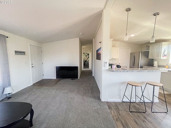 Newer 2022 Fleetwood Manufactured home in Myrtle Point. This 1056 Sq ft, 3 Bed 2 Bath manufactured home sits on a corner lot. The house features laminate floor and carpet floors, white kitchen cabinets, stainless steel appliances, raised eating bar between kitchen and living room, separate dining area, laundry room with door to back porch and ductless Heat pump. There is a nice porch on the front entry and a good parking area. OWNER WILL CARRY AT 6.5% WITH $20,000 DOWN! Call for a showing today.